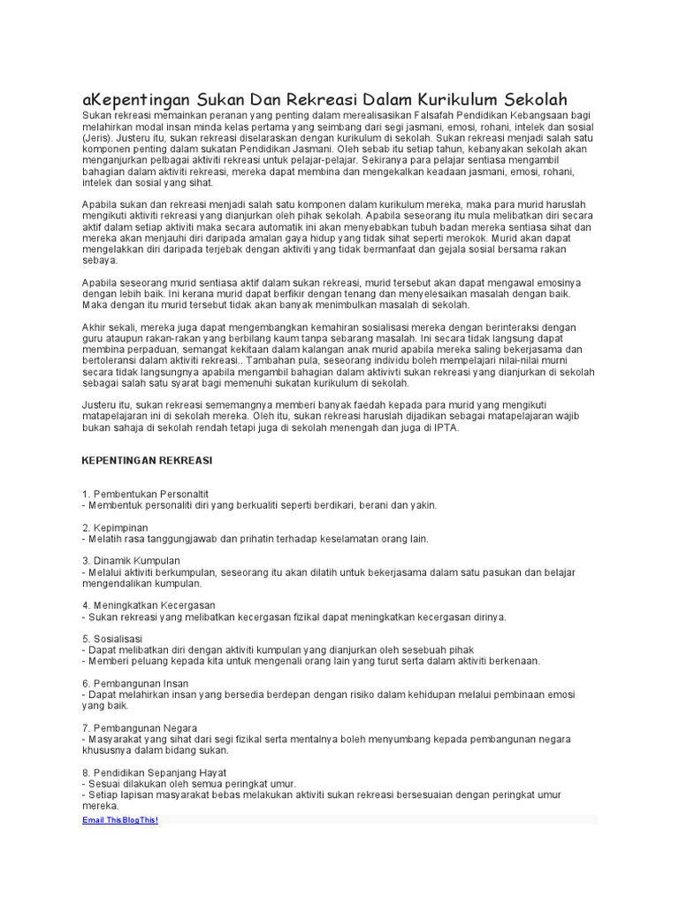 Kepentingan Sukan Dan Rekreasi Dalam Kurikulum Sekolah Pdf